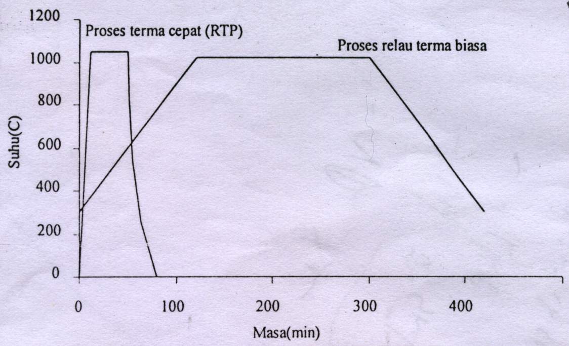Kadar perubahan suhu adalah dalam julat 10 °C / s hingga 350 °C / s iaitu jauh lebih tinggi berbanding dengan relau biasa, 0.1 °C / s seperti Rajah 6.